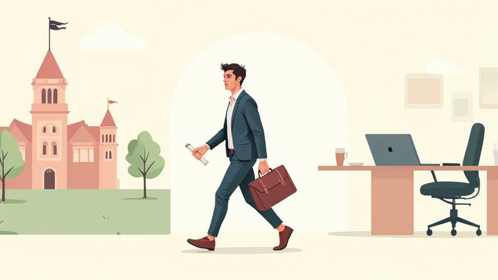 Dein Abschluss ist ein starkes Signal an den Arbeitsmarkt, keine Frage. Aber er ist kein Freifahrtschein für den Traumjob. Der Berufseinstieg nach dem Studium führt dich in eine Welt, die gleichzeitig voller Möglichkeiten steckt und hart umkämpft ist. Ein ehrlicher Blick auf die Lage hilft dir, die richtige Strategie für dich zu finden.