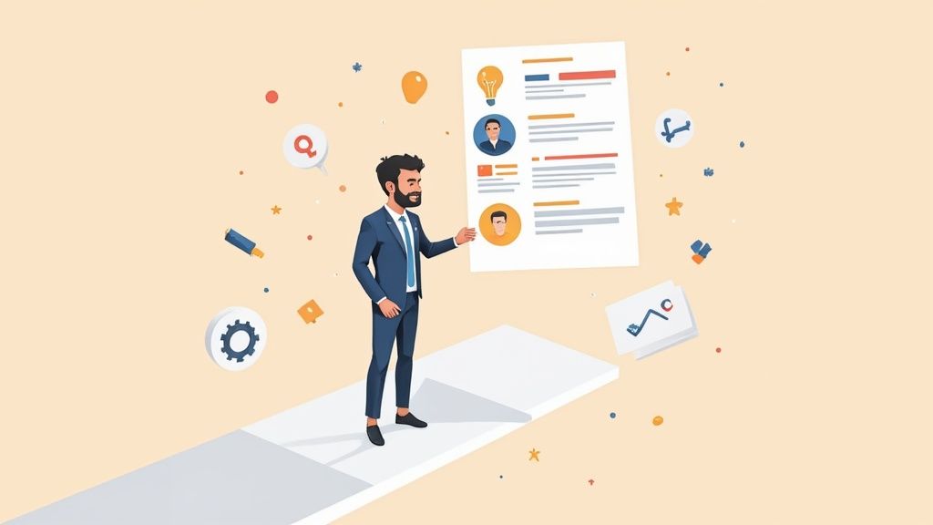 Der Trick dabei ist ein kompetenzbasierter Ansatz. Statt den Personaler selbst nach passenden Fähigkeiten suchen zu lassen, servierst du sie ihm auf dem Silbertablett. Das schafft sofort Klarheit und zeigt unmissverständlich, dass du die Anforderungen der neuen Rolle verstanden hast.