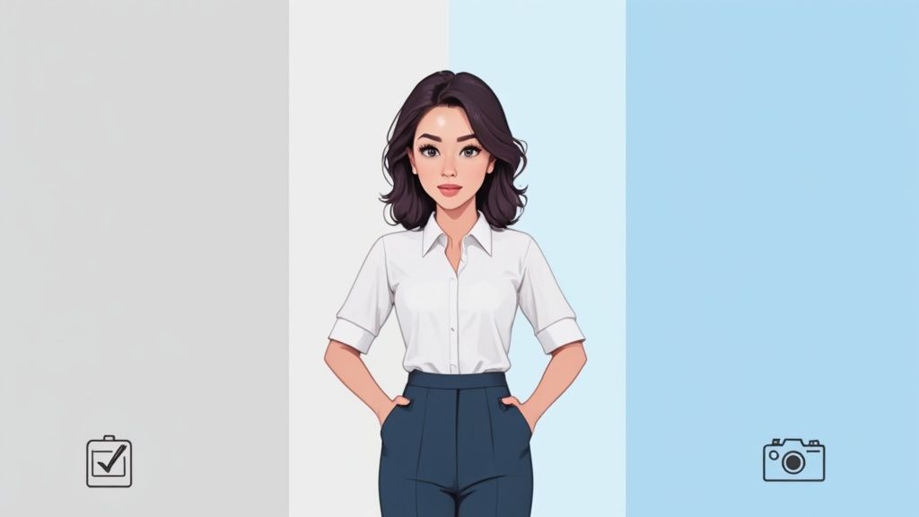 Genau hier hat die Technologie in letzter Zeit enorme Sprünge gemacht. Moderne KI-Tools (Künstliche Intelligenz) krempeln die Erstellung von Bewerbungsfotos gerade komplett um. Sie bieten eine schnelle, kostengünstige und qualitativ beeindruckende Alternative zum klassischen Gang ins Fotostudio.