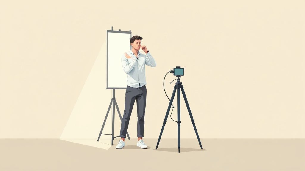 So, dein Setup steht. Jetzt kommt der wirklich spannende Teil: die Aufnahme. Keine Sorge, wir übersetzen jetzt das technische Kauderwelsch in einfache, klare Anweisungen. Das Ziel ist, dass du vor der Kamera nicht nur gut aussiehst, sondern dich auch so fühlst. Denn genau diese Authentizität ist der Schlüssel zu einem Bewerbungsfoto, das wirklich überzeugt.