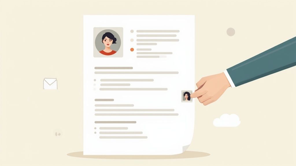 Die Dateigröße ist ein wirklich kritischer Punkt. Eine Bewerbungs-E-Mail sollte inklusive aller Anhänge eine Gesamtgröße von 3 bis 5 Megabyte (MB) nicht sprengen. Ein hochauflösendes Foto direkt von der Kamera kann allein schon 10 MB oder mehr haben – ein absolutes No-Go für die meisten Firmen-Server.