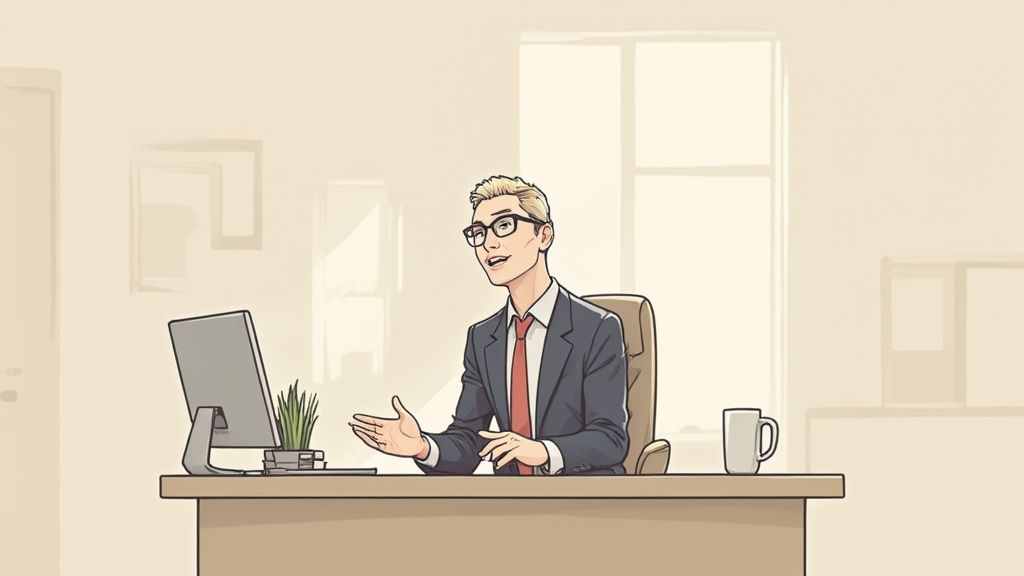 Diese offene Haltung ist absolut entscheidend. Studien aus Deutschland zeigen immer wieder: Für über 70 % der Personaler ist die Körpersprache ein ganz wesentliches Kriterium bei der Bewertung. Eine offene, zugewandte Haltung und ein kontrollierter Einsatz deiner Hände sind essenziell, um Vertrauen aufzubauen.