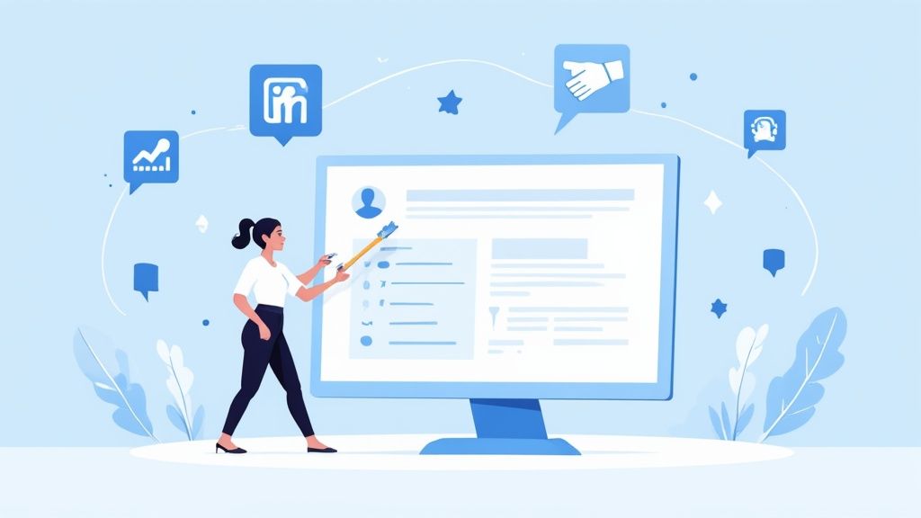 Der entscheidende Hebel, um dein Profil auf das nächste Level zu bringen, ist der Schwenk von der reinen Aufgabenbeschreibung zur ergebnisorientierten Darstellung. Weg von passiven Formulierungen, hin zu aktiven Verben und konkreten Zahlen. Das zeigt Initiative und untermauert deine Kompetenz mit handfesten Beweisen.