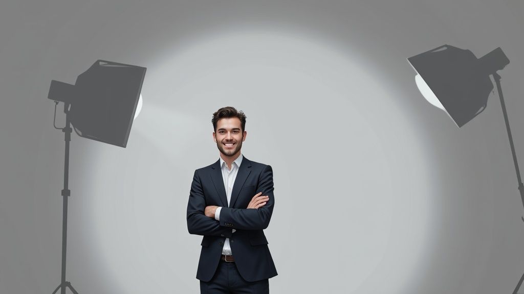 Dein Auftritt beginnt lange, bevor die Kamera überhaupt klickt. Das passende Outfit und ein gepflegtes Styling sind das Fundament für ein modernes Bewerbungsfoto für Männer, das auf den ersten Blick Kompetenz und Selbstbewusstsein vermittelt. Hier geht es nicht um Verkleidung, sondern darum, eine bewusste Entscheidung zu treffen, die deine Professionalität unterstreicht.