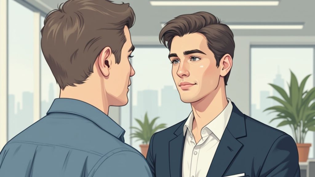 Der erste Schritt ist immer eine kurze Recherche. Wirf einen Blick auf die Website des Unternehmens oder die LinkedIn-Profile deiner zukünftigen Kollegen. Das gibt dir sofort ein Gefühl für den Dresscode, der von stockkonservativ über Business Casual bis hin zu kreativ-entspannt reichen kann.