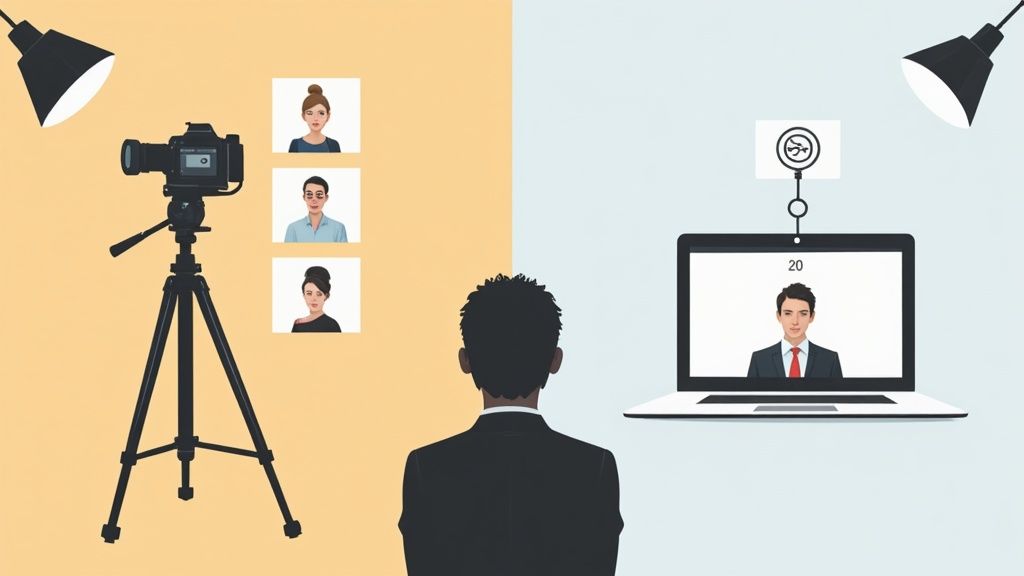 Um dir die Entscheidung leichter zu machen, haben wir die wichtigsten Kriterien direkt nebeneinandergestellt. Diese Tabelle zeigt auf einen Blick, wo die fundamentalen Unterschiede zwischen einem klassischen Fotografen und einem Online-KI-Dienst liegen.