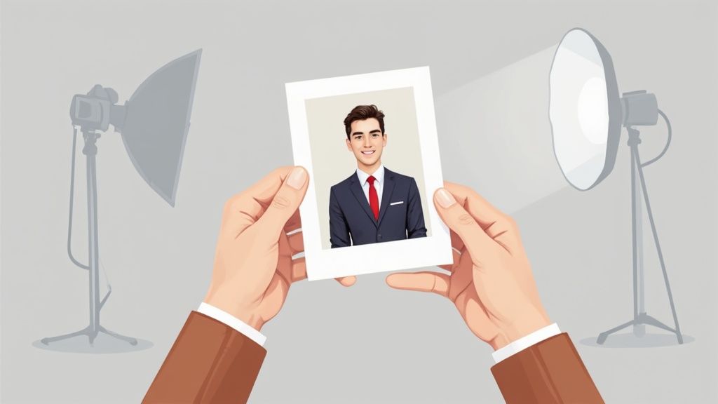 Die große Frage vorneweg: Gibst du das Geld für einen Profi aus oder legst du selbst Hand an? Das ist oft eine der ersten Hürden auf dem Weg zur perfekten Bewerbung. Ein professioneller Fotograf bringt eben weit mehr mit als nur eine teure Kamera. Es ist die Expertise in Sachen Lichtsetzung, Posing und Bildbearbeitung, die am Ende den feinen, aber entscheidenden Unterschied ausmacht.