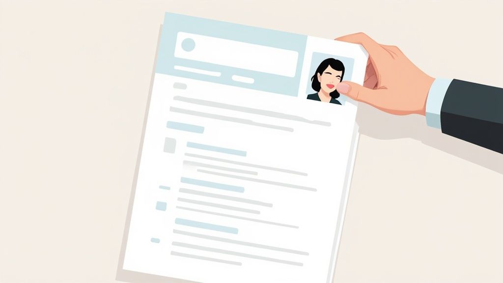 Die mit Abstand gängigste und modernste Methode ist es, dein Foto direkt in den Lebenslauf zu packen. Mal ehrlich, Personaler haben wenig Zeit. Mit dieser Variante gibst du ihnen alles auf einen Blick: dein Gesicht, deine Qualifikationen, deine Persönlichkeit. Effizienter geht’s kaum.